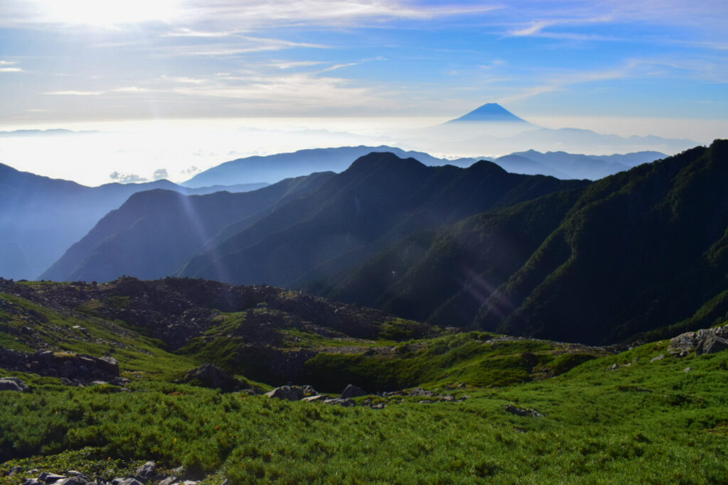 今回は登山歴1年の職場の先輩と白峰三山へ行った。この山行は1年前に企画し、この日のために先輩は体力作りや情報収集を行い万全の準備を整えていた。いざ登山が開始すると安定した歩き。登山歴が浅いのに流石である。テント泊登山を快適にする術や行動食も工夫していた。2泊3日を想定していたが、予定よりも順調であったため1泊2日で山行を終えた。天気はよく、絶景を拝みながらの稜線歩きは格別であった。