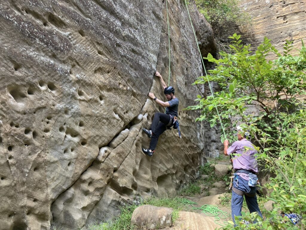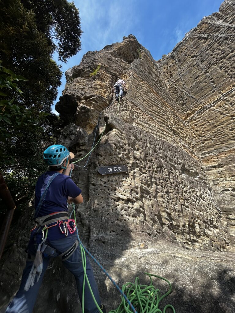 マルチピッチの練習。2ピッチ。下降は空中懸垂。問題なく終える。